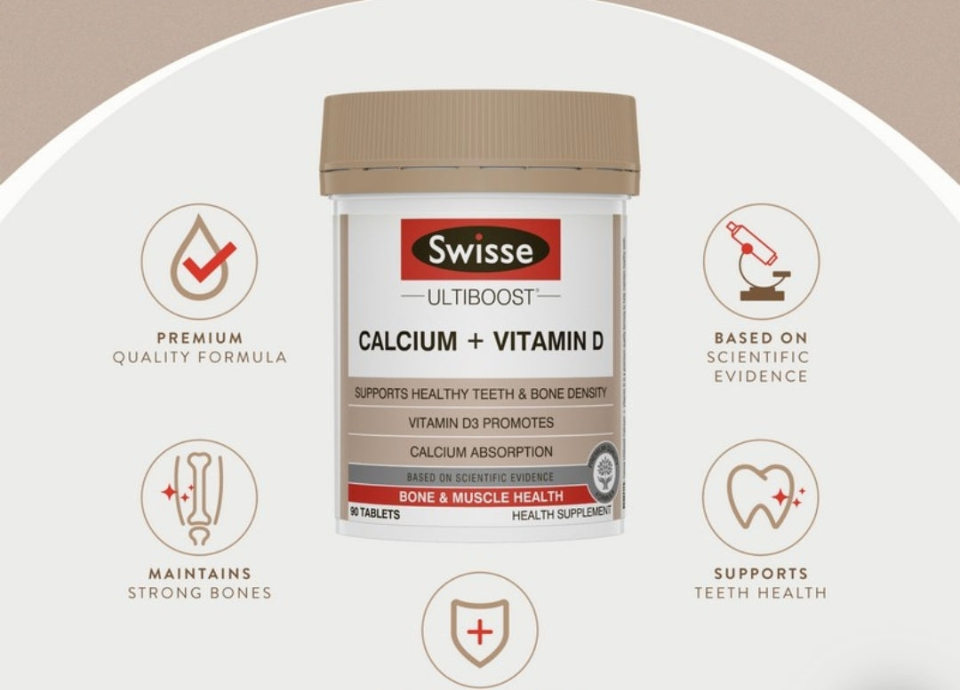 Swisse Ultiboost 鈣+維生素D 是一種含高質量配方,有助於保持牙齒和骨骼健康。